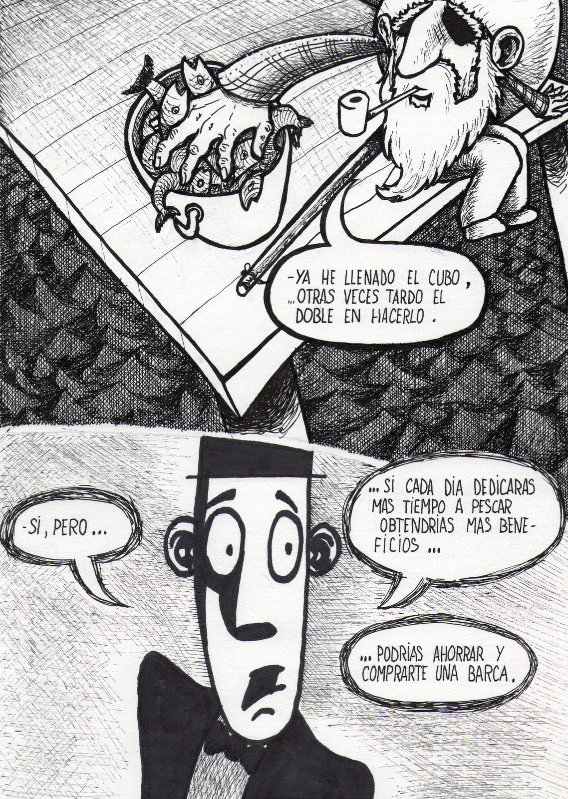 Cuento ilustrado «Conversación entre un pescador y un empresario»